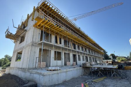 The weather is on our side, so we are working non-stop. We are currently working on the construction of apartment building B on the 4th floor. We are starting with the lining of the window sills and also the walls in the garage area, where there will be cellars, a…