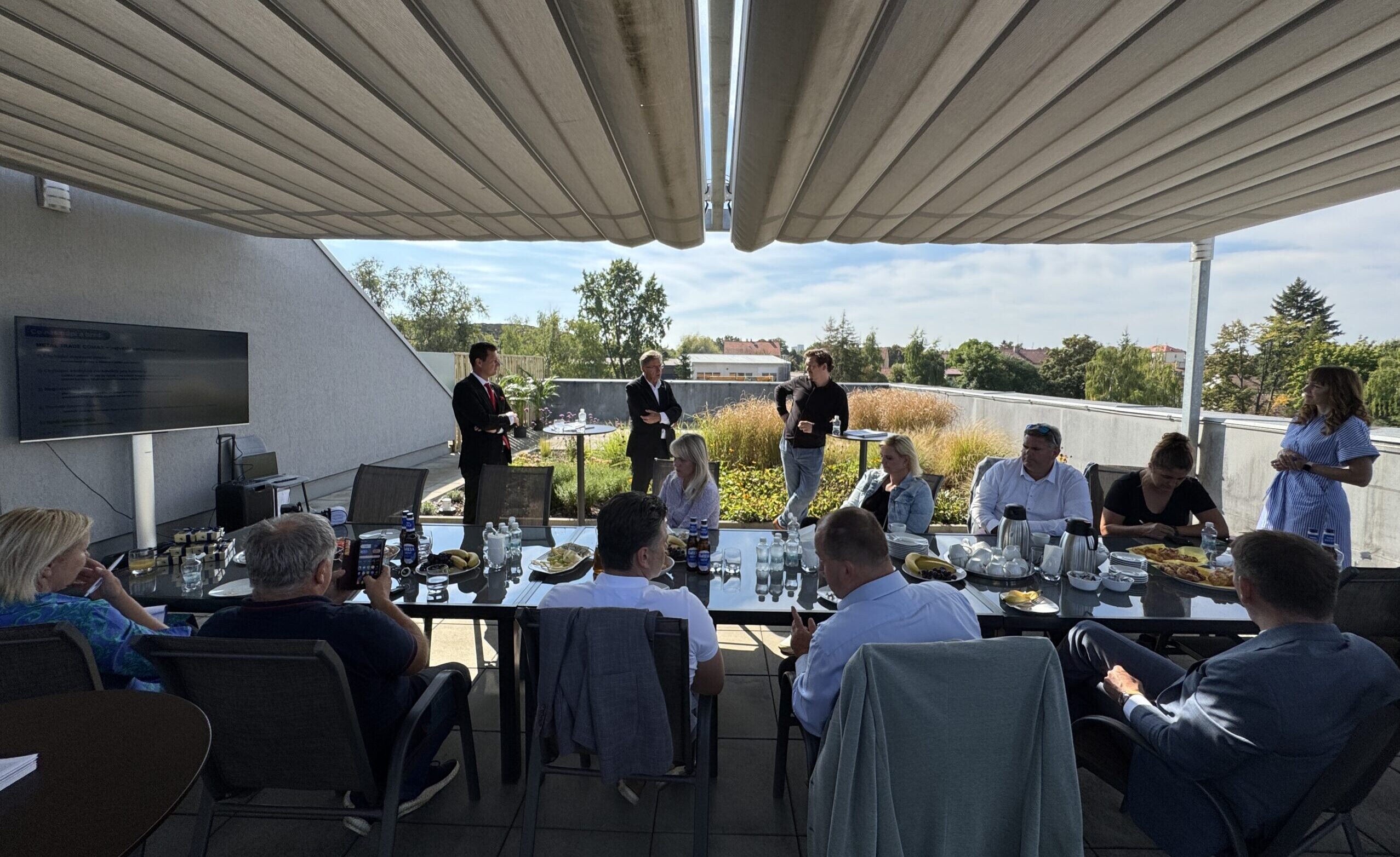 Der Diskussion ging eine Besichtigung unserer Betriebe voraus. Nach der Besichtigung nutzten wir einen der letzten schönen Sommertage und sprachen auf unserer Dachterrasse wichtige Themen an: