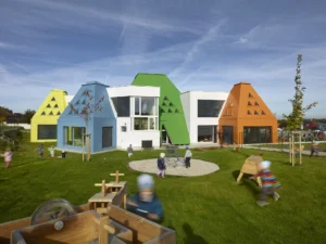 Das Schuljahr in diesem Kindergarten muss fröhlich gewesen sein – die phantasievolle Architektur des Studios Architektura s.r.o. wurde durch eine farbenfrohe Aluminiumhülle von Comax aufgepeppt.