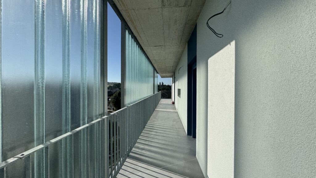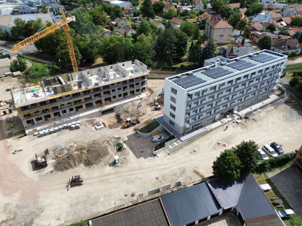 If you want to see what building B will look like when it’s finished, take a look at building A – the south and west sides of the building are clearly visible from Na Průhoně Street, and if you arrange a tour, you can see the inside of the building – high-quality fixtures and fittings, views, cellars, and garages. And, of course, the show apartment.