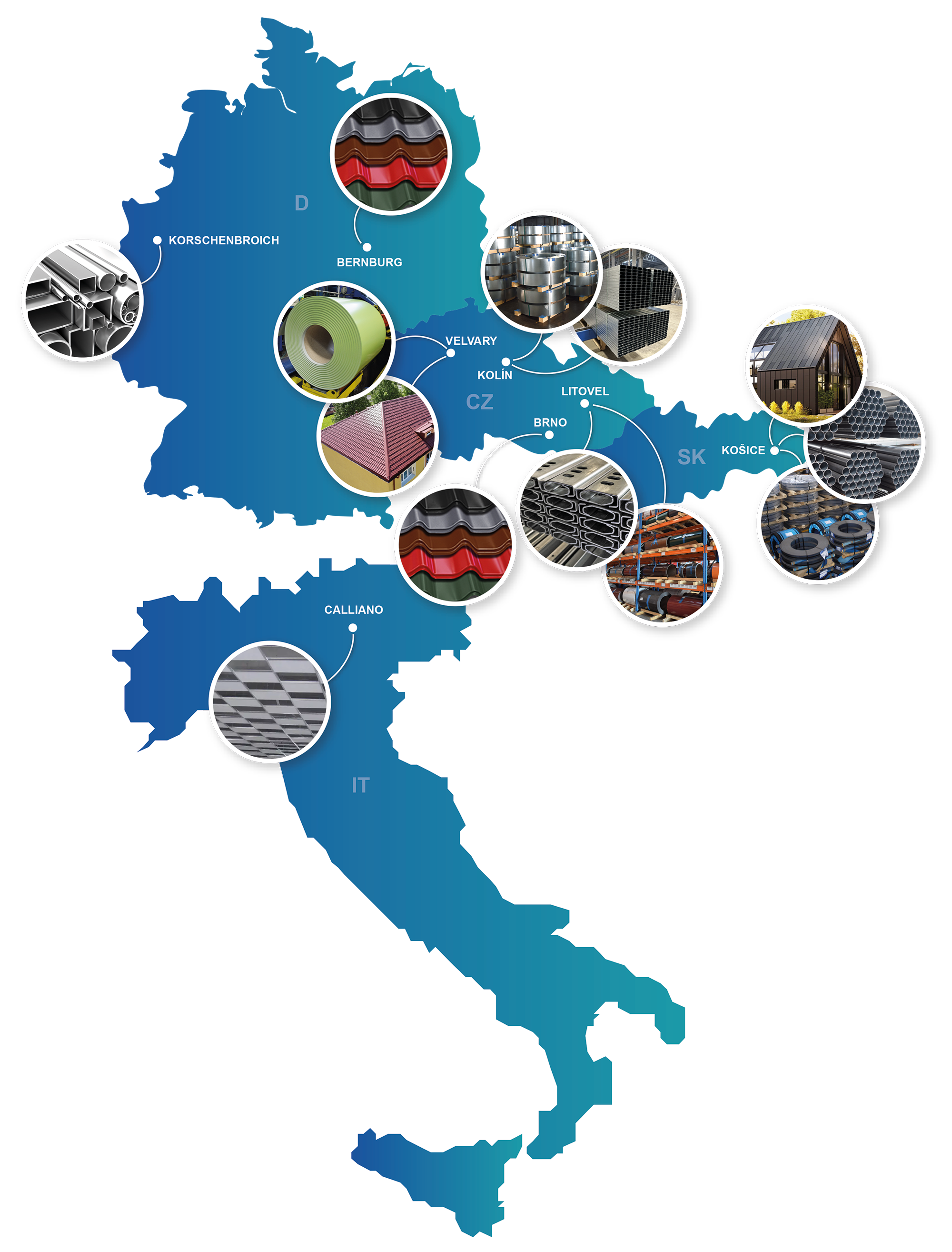 In 2009, after a subsidiary was established in Košice, it also began producing structural steel shapes; in the same year, the company acquired a modern steel shape production plant in Litovel, and in 2019 it opened a representative office in Germany. In 2022, we began producing steel shapes in the new production plant in Kolín.