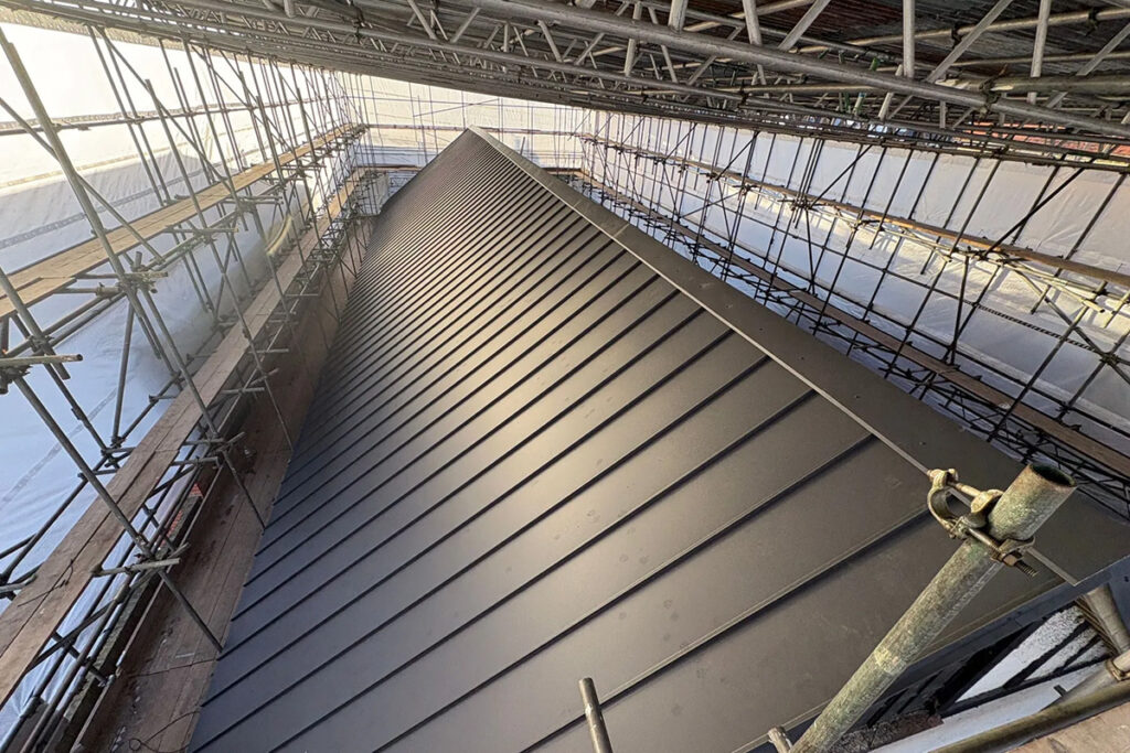 We can form trapezoidal, corrugated, tile, standing seam or Alukryt® roofing from our coated sheet metal, or supply coated coils for folding.