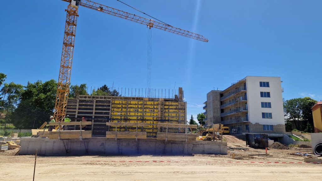 II. etapa má 38 bytových jednotek včetně 2 bytů se zahradami a dům roste velmi svižně – aktuálně už bedníme stěny ve 2.NP.